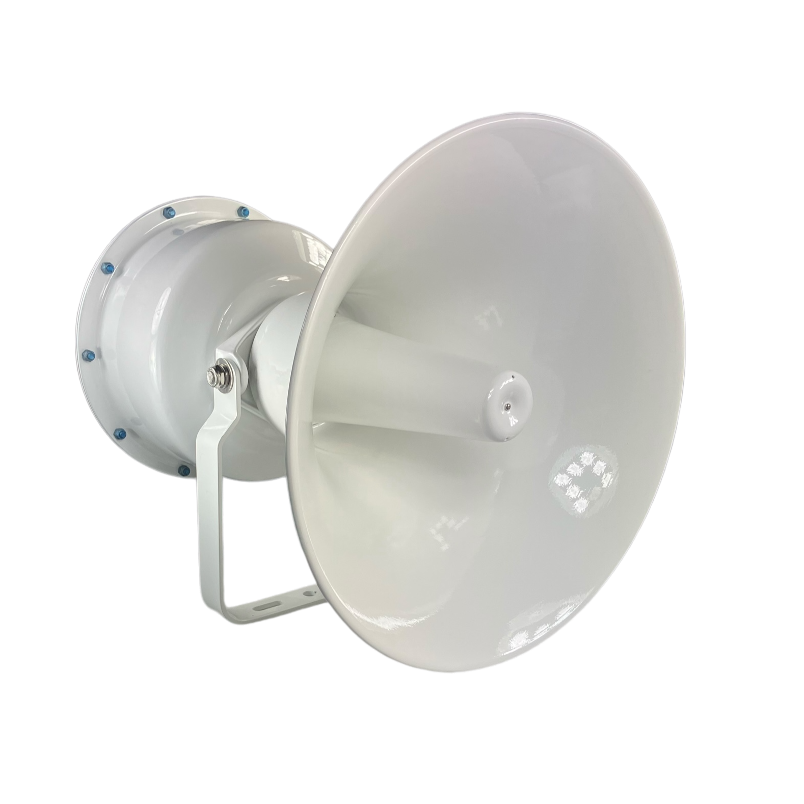 The Kahlenberg KB-30A-HP is a high power marinized, heated speaker assembly normally used for high-power marine hailing applications. The KB-30A-HP provides 200 watts of hailing power producing intelligible voice at a distance of over 300 meters in average conditions. The KB-30A-HP can be used with various audio sources including paging systems. Contact Kahlenberg for additional technical details and specific application requirements.