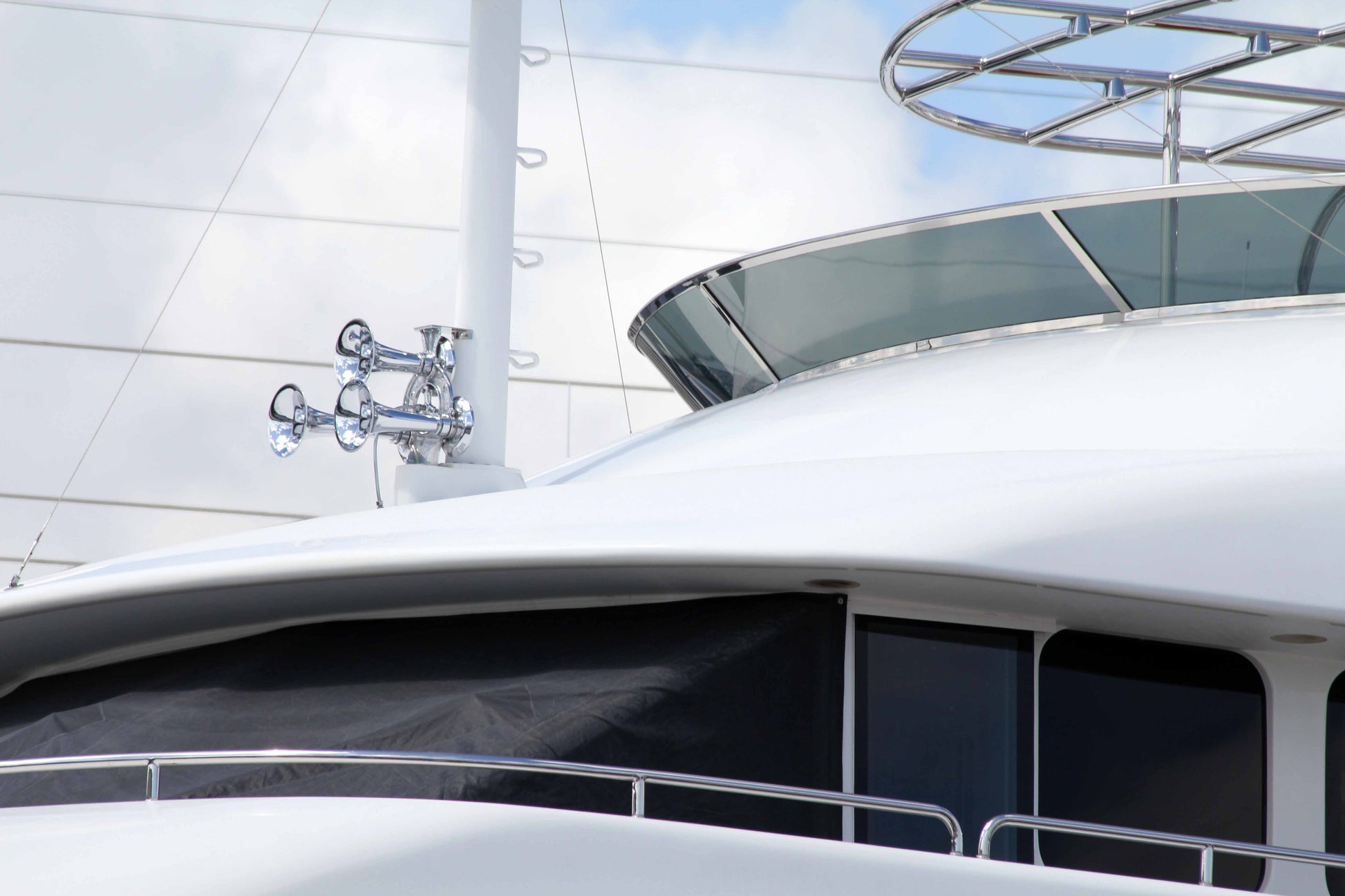 Kahlenberg Chimetone Air Horns all utilize more than one projector or “trumpet” in their design. These projectors each produce a different fundamental frequency which combine to produce powerful, distinctive, musical chords. To hear a Chimetone Air Horn is to realize that the sound of a vessel can be one of its most impressive aspects. The Model T-3A Air Horn is designed for the most discriminating yachtsman. It is made entirely of bronze and brass, and is triple plated for a deep chrome finish.